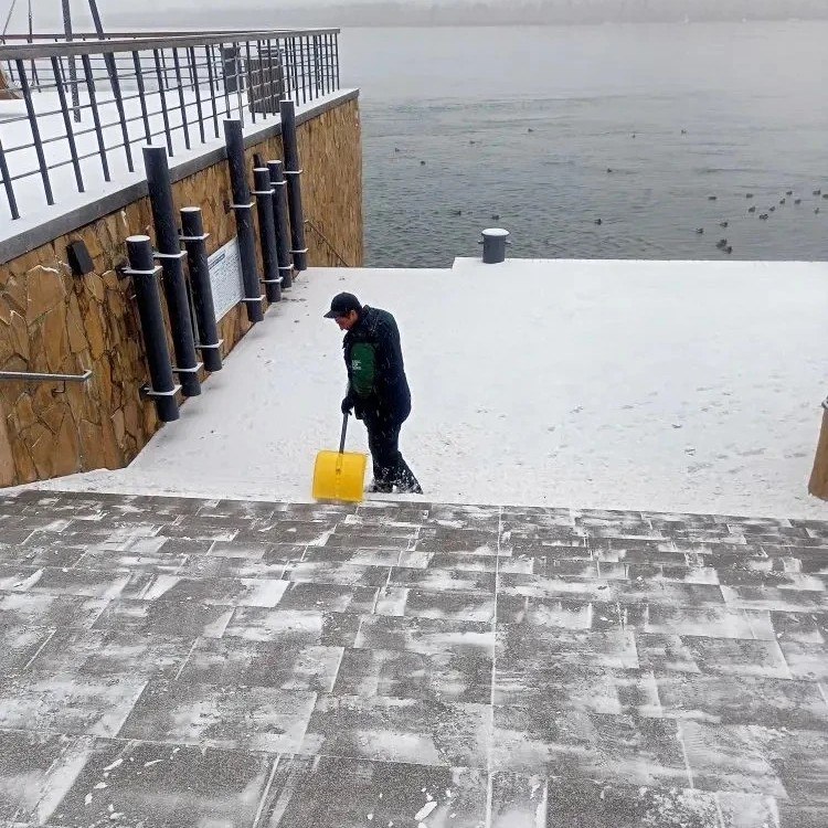 Парки и набережные Красноярска продолжают приводить в порядок после снегопада.