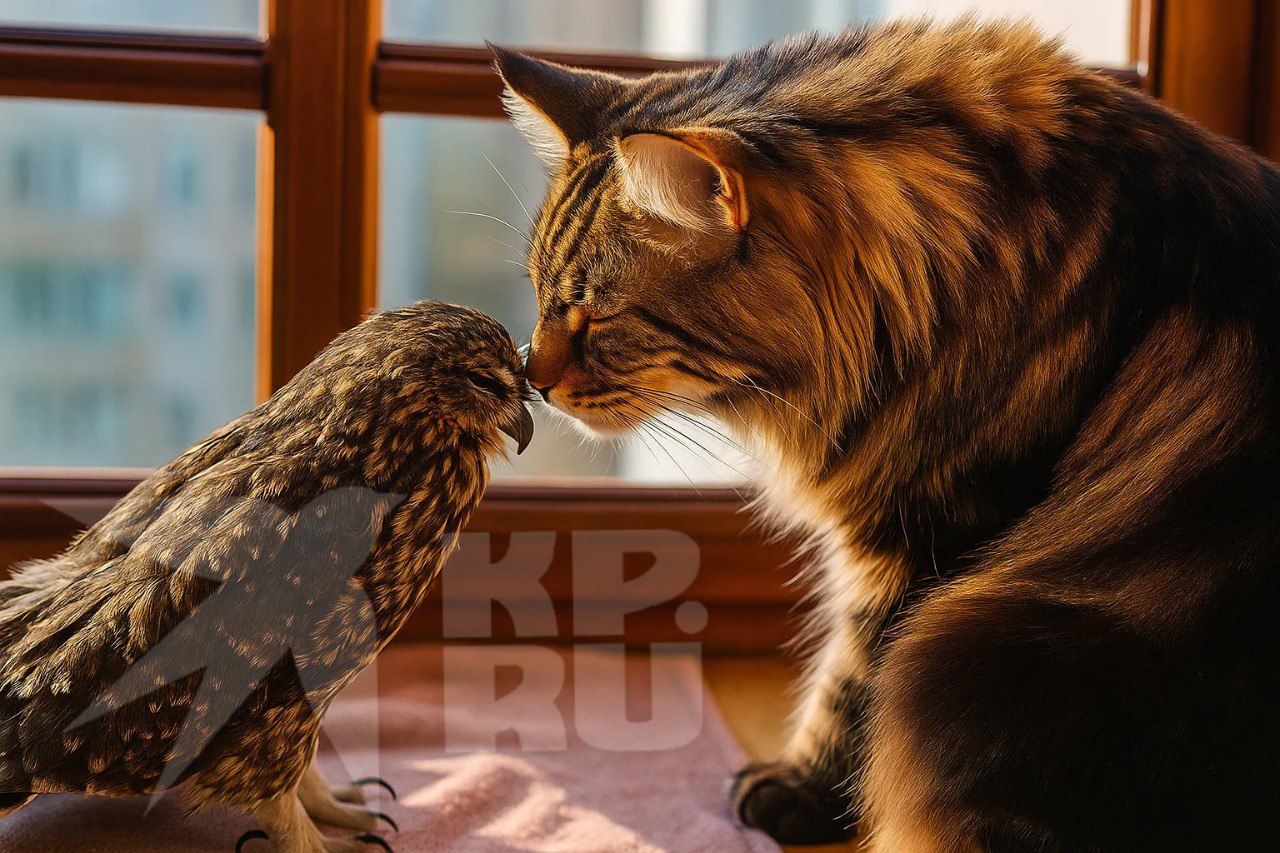 Один крылатый, другой усатый-полосатый... В Абакане спасенный от смерти коршун подружился с мейн-куном. И всё благодаря общему хозяину, ветерану горячих точек Николаю Нуштаеву. Вызволив из беды умирающую птицу, он поселил ее у себя. А кот был тут как тут! Только пускать в ход коготки не стал. Наоборот – сделался коршуну лучшим другом.