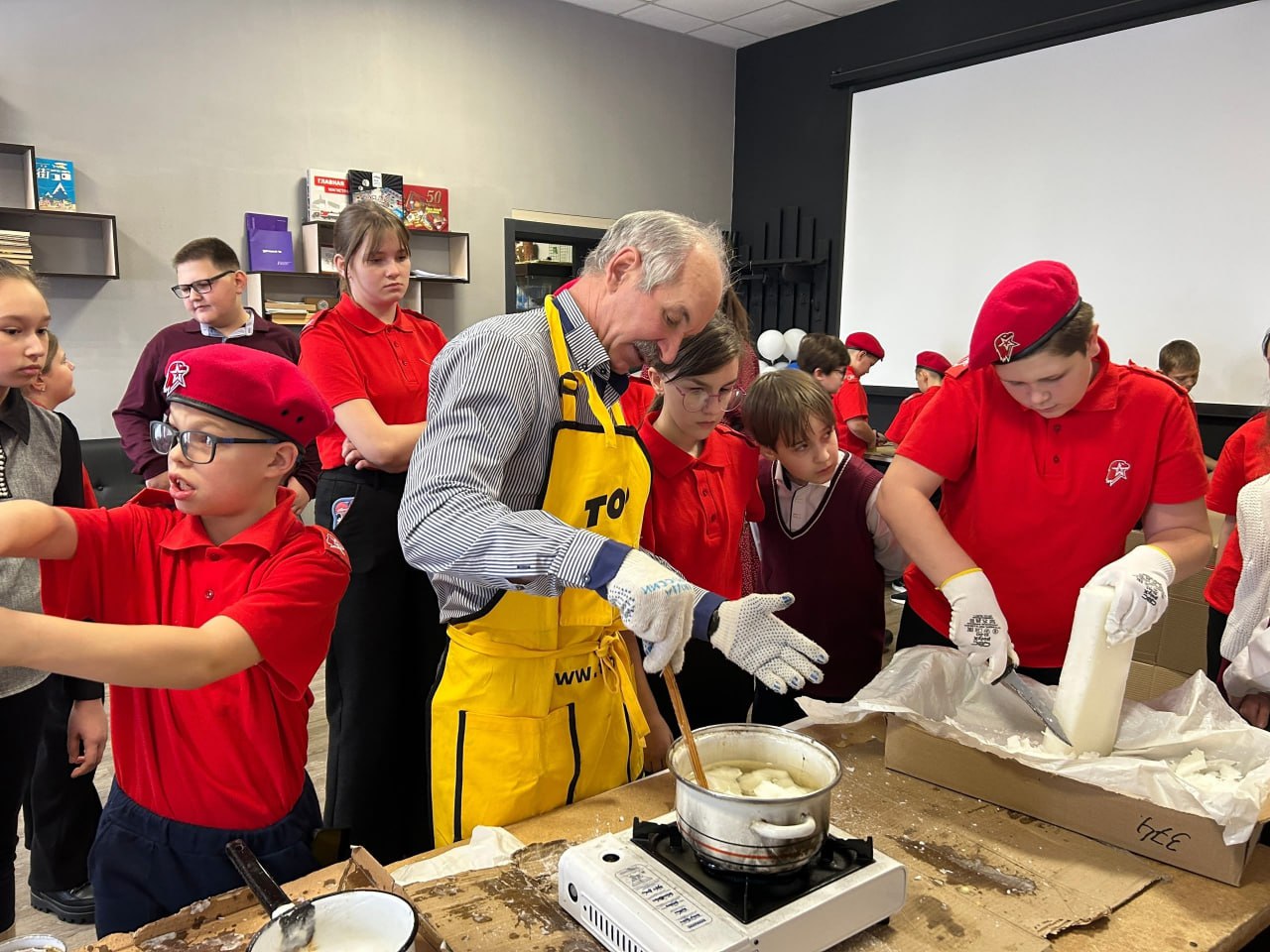 В Бородино собирают очередную партию гуманитарной помощи, чтобы успеть отправить до новогодних праздников. В волонтёрском и молодёжном центрах шьют защитные средства и нижнее бельё, вяжут тёплые вещи, готовят каши и супы, сортируют посылки. В образовательных учреждениях города дети пишут открытки солдатам, собирают с родителями и педагогами сладкие подарки.