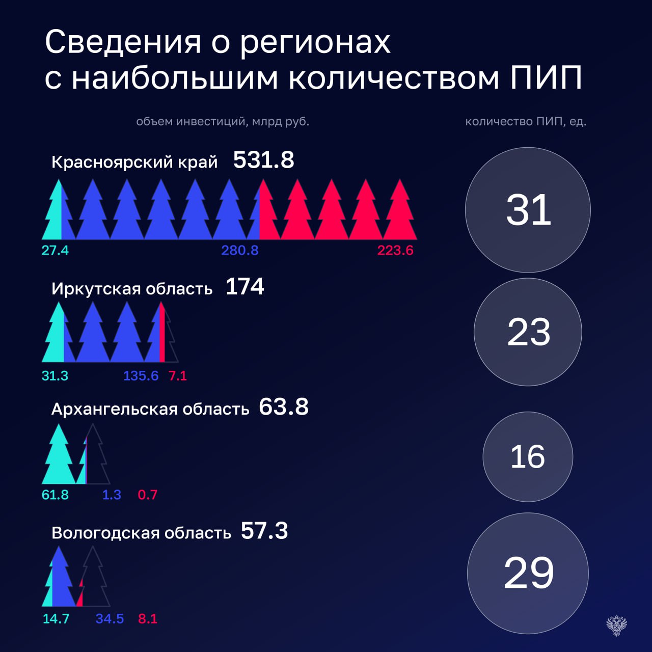 Всего в перечень ПИП было включено 285 проектов в 41 субъекте Российской Федерации.