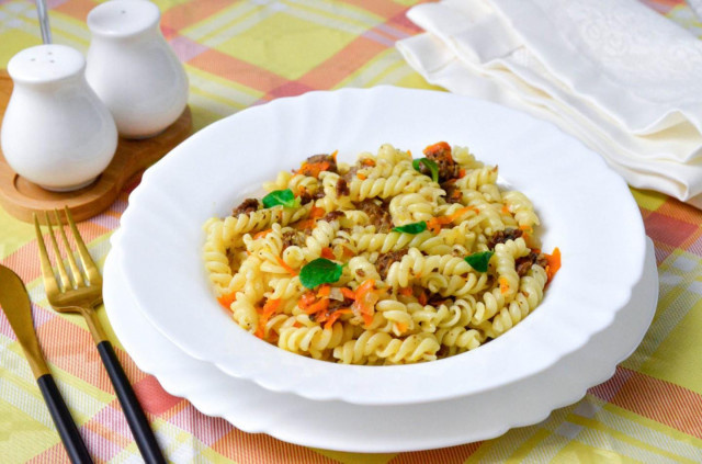 - Гибкость выбора: можно использовать различные виды тушенки и макарон — от говяжьей до куриной и любые формы пасты.