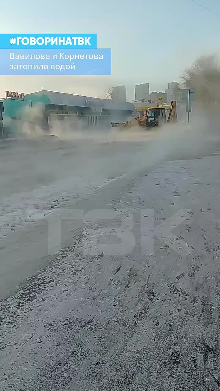 «Вся улица Корнетова залита от кольца на Вавилова. Пар стоит – ничего не видно. Там все лето что-то ремонтировали и раскопки были. Первый мороз и такая авария», – сообщают подписчики ТВК.