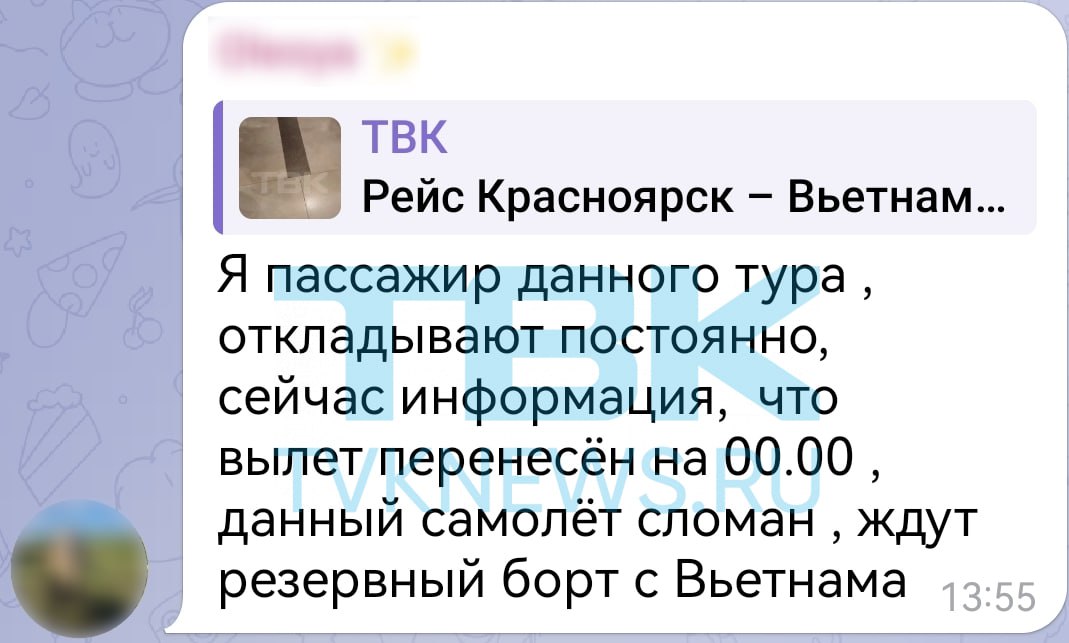 В пресс-службе аэропорта нам сообщили, что причина в технической неисправности самолета, но не уточнили в какой именно. Очевидцы же говорят, что борт не подлежит ремонту и такая задержка обусловлена тем, что за пассажирами летит резервный борт из Вьетнама.