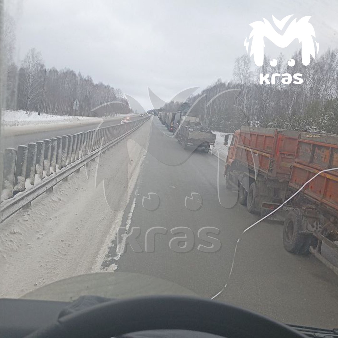 Большегруз попал в аварию в Ачинском районе, свернулся клубочком и никого не пускает.
