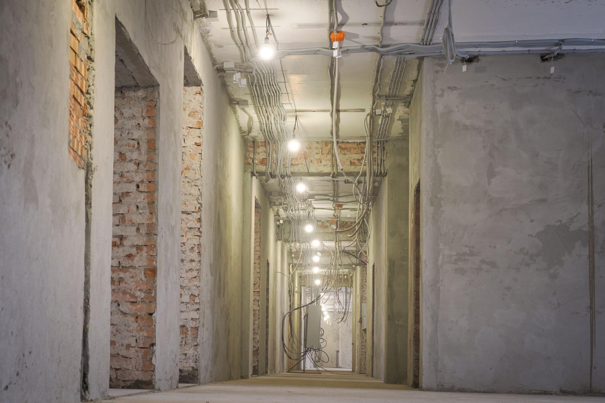 Подрядчик приступил к работам в 2024 году. К сегодняшнему дню усилен фундамент школы, перекрытия второго и третьего этажей, обновлена кровля. Завершаются монтаж перегородок и штукатурные работы, идет обустройство систем горячего и холодного водоснабжения, канализации, электроснабжения, вентиляции. После ремонта территория школы будет благоустроена, и к концу 2026 года объект планируют сдать.