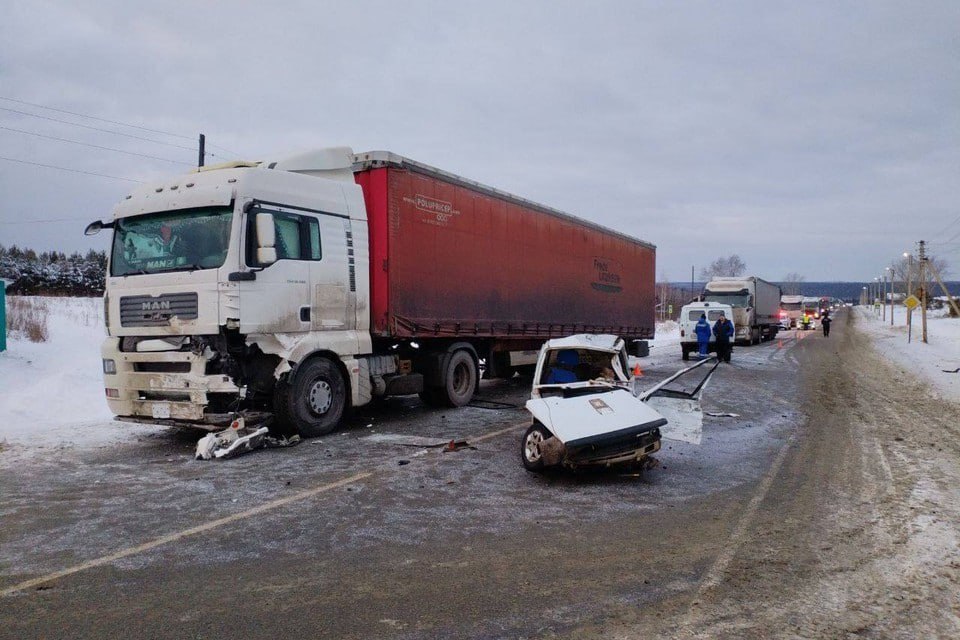«Три человека погибли»: автомобиль «Ока» залетел под фуру на трассе в Красноярском крае