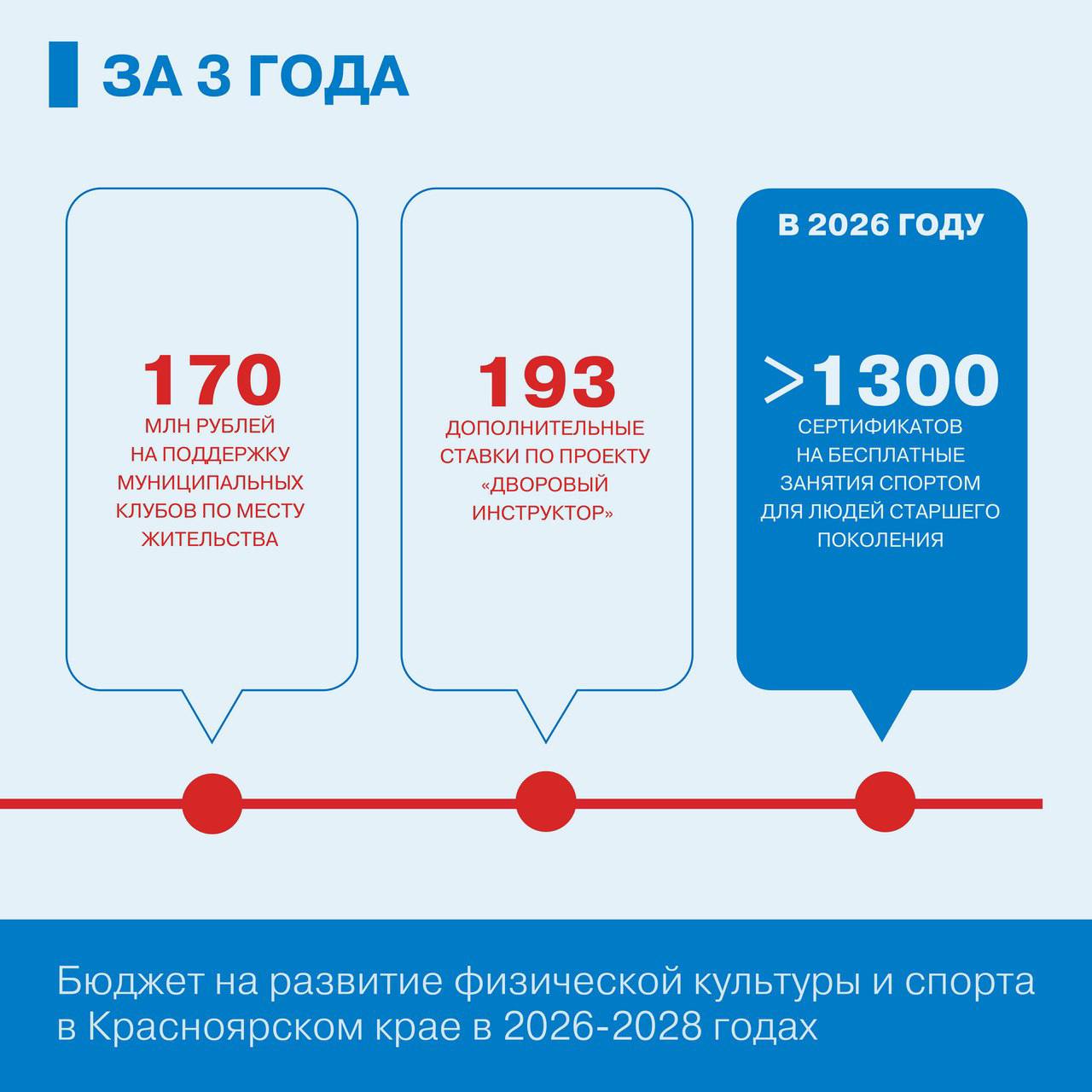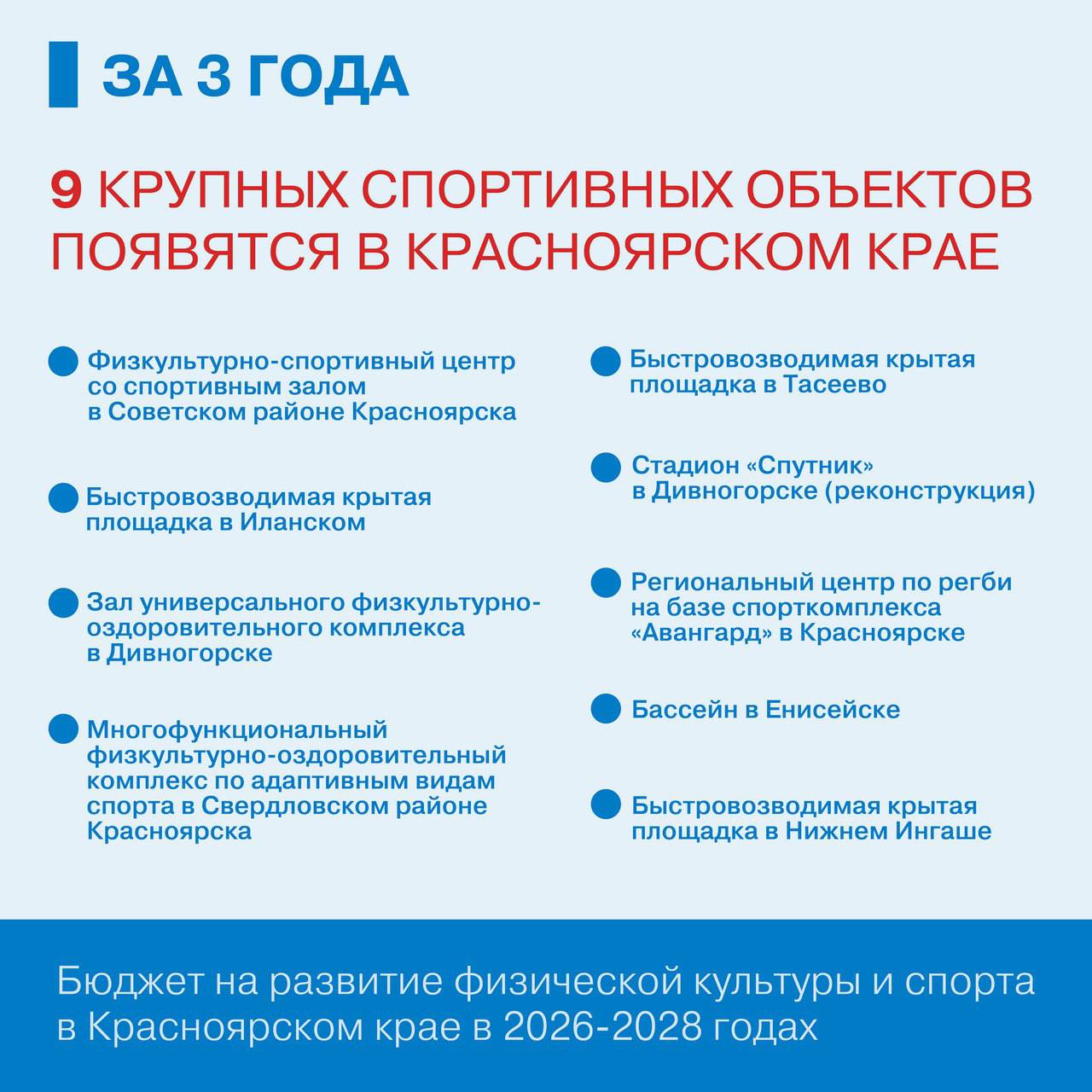 Будут новые крупные объекты, быстровозводимые сооружения и площадки ГТО, поддержка СШОР и клубов по месту жительства, развитие адаптивного спорта и услуг для старшего поколения. Для наглядности делюсь карточками с основными проектами по нашей отрасли.