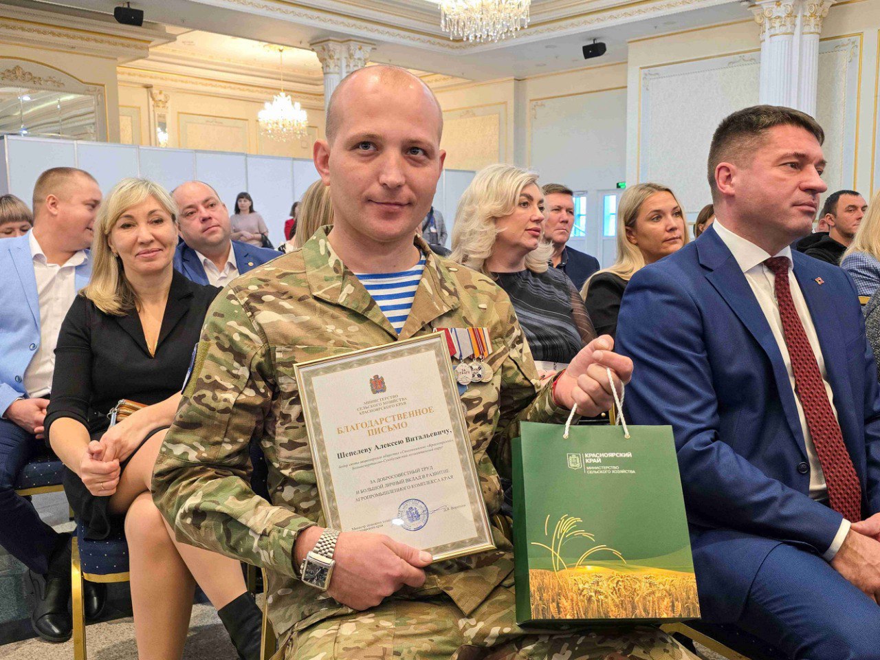 На торжественном собрании были отмечены лучшие работники АПК, среди которых, и участники СВО, вернувшиеся в родные хозяйства.