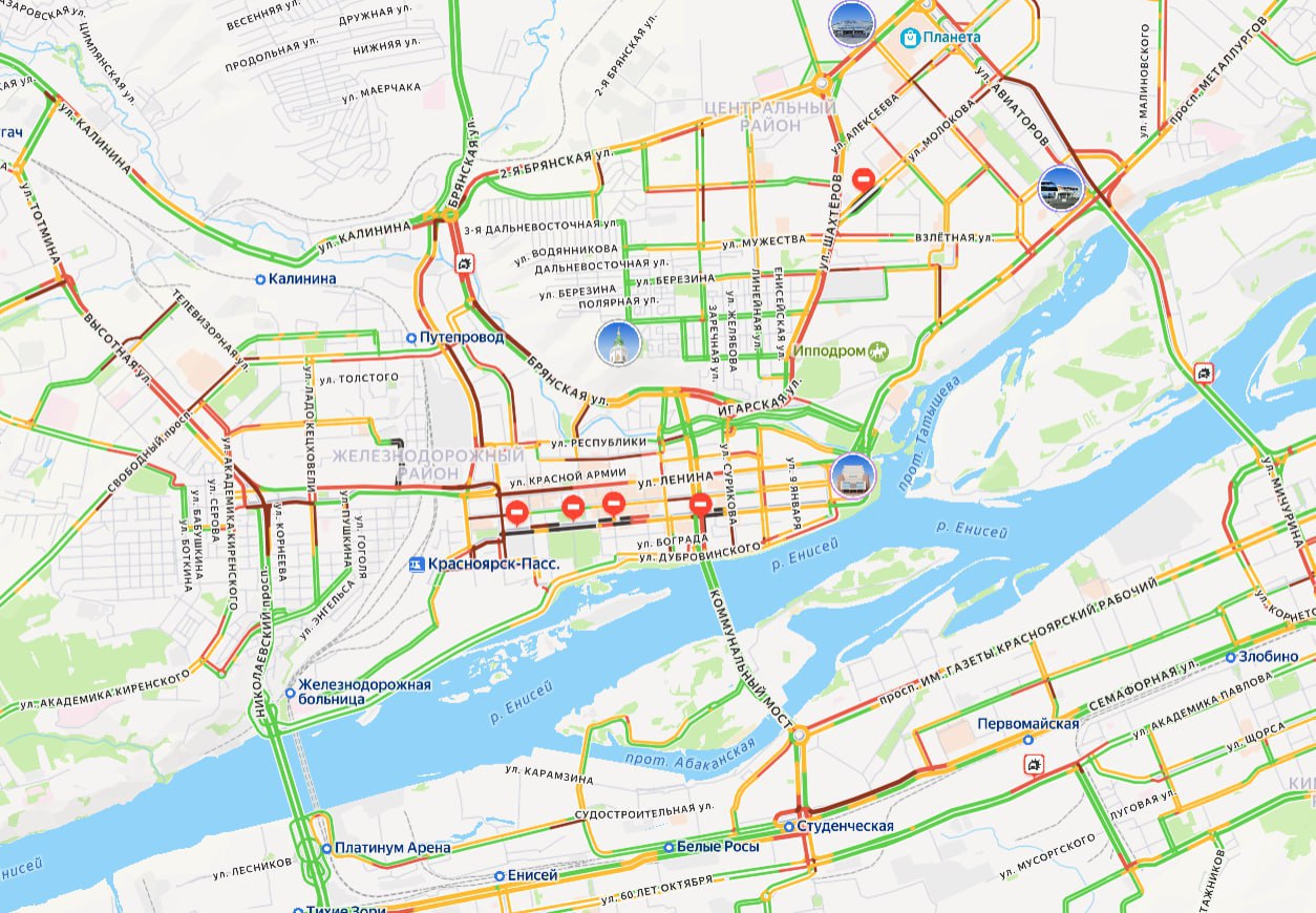 Красноярск встал в пятничные пробки
