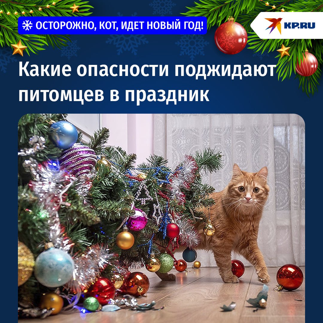 Осторожно, кот, идет Новый год! Какие опасности поджидают питомцев в праздник