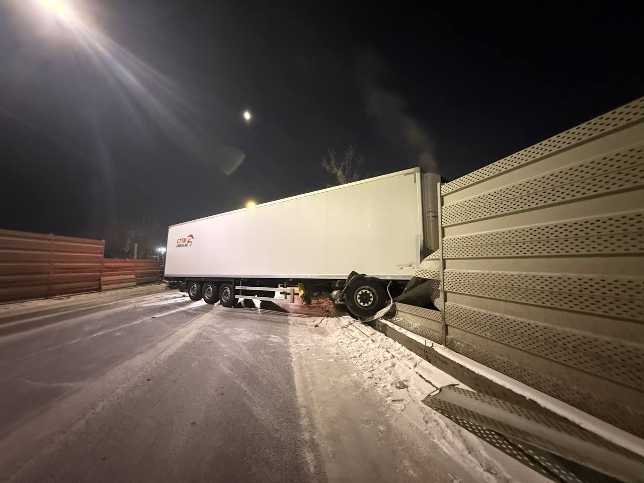 Грузовик перекрыл дорогу на Авиаторов в районе ТЦ «Авиатор»