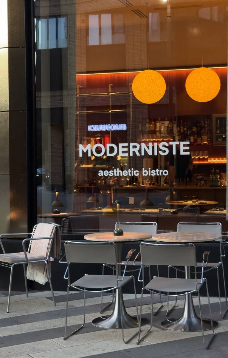 Визит в Moderniste — это не просто обед, это целая гастрономическая история. Пространство оформлено в уютном стиле, напоминающем атмосферу европейских гостинец 70-х, с мягким освещением, светлой мебелью и стилевыми винными шкафами. Даже такие детали, как необычный дизайн туалета, стали предметом обсуждений среди посетителей.