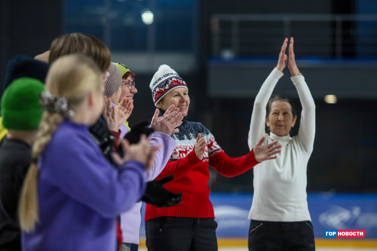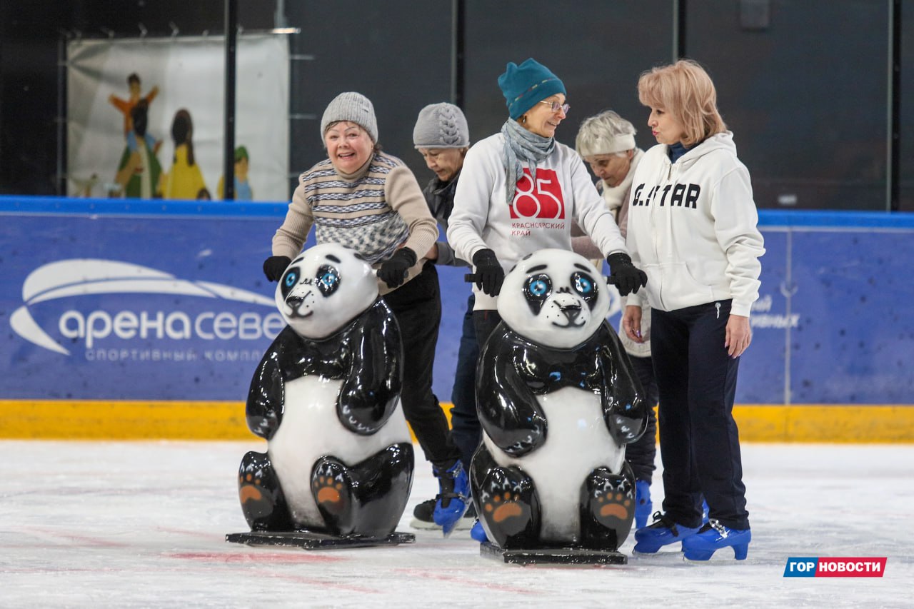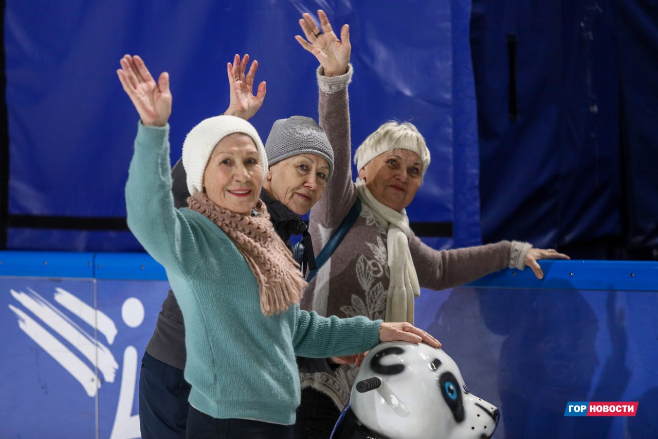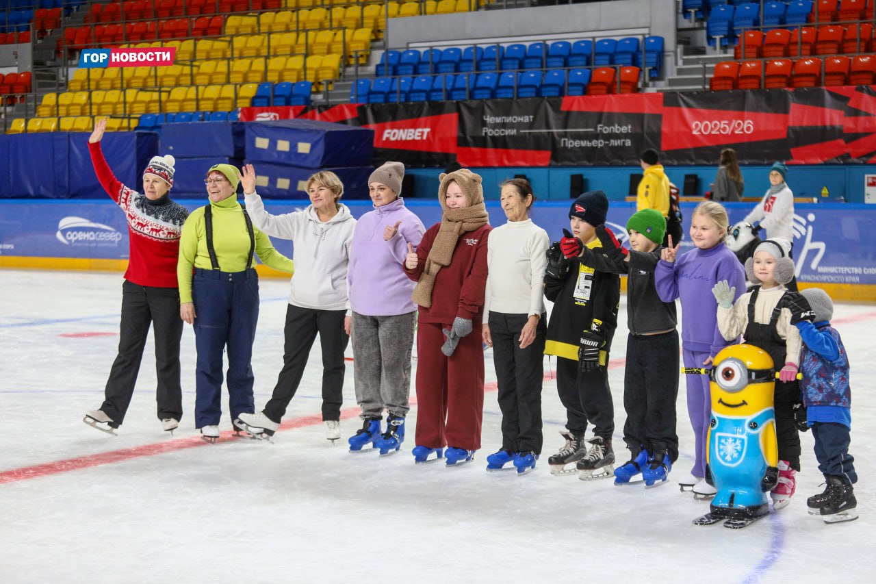 В Красноярске прошли тематические катания на коньках для участников проекта «Сибирское долголетие 2025. От мала до велика».