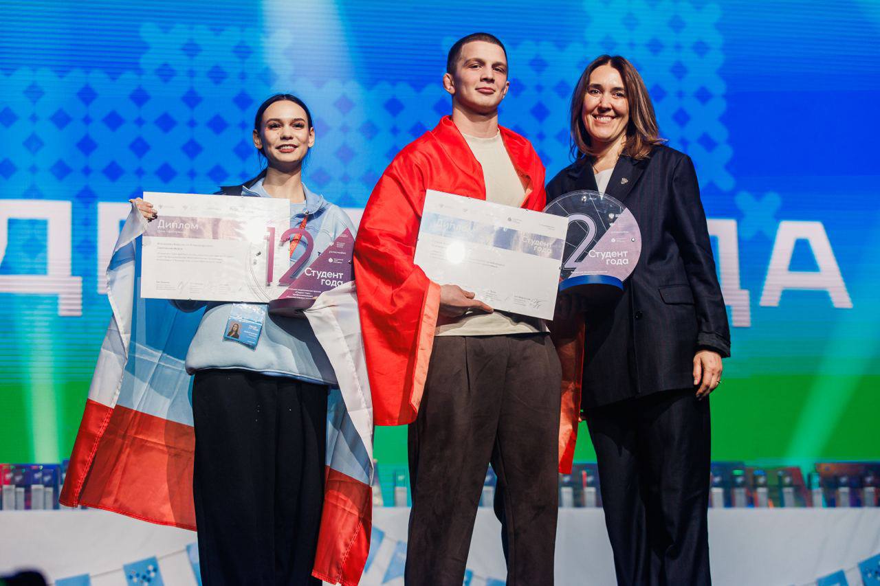 Обладателями Гран-при Российской национальной премии «Студент года» стали участница номинации «Председатель совета обучающихся года» Анастасия Фазлыева из Саратовской области и участник номинации «Спортсмен года» Антон Сучков из Красноярского края.