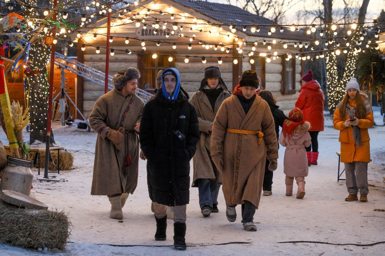 Огромное чучело Масленицы, торговые прилавки и блины появились на острове Татышев. Однако это не подготовка к городскому празднику — здесь кинокомпания Legio Felix снимает фильм «Масленица».