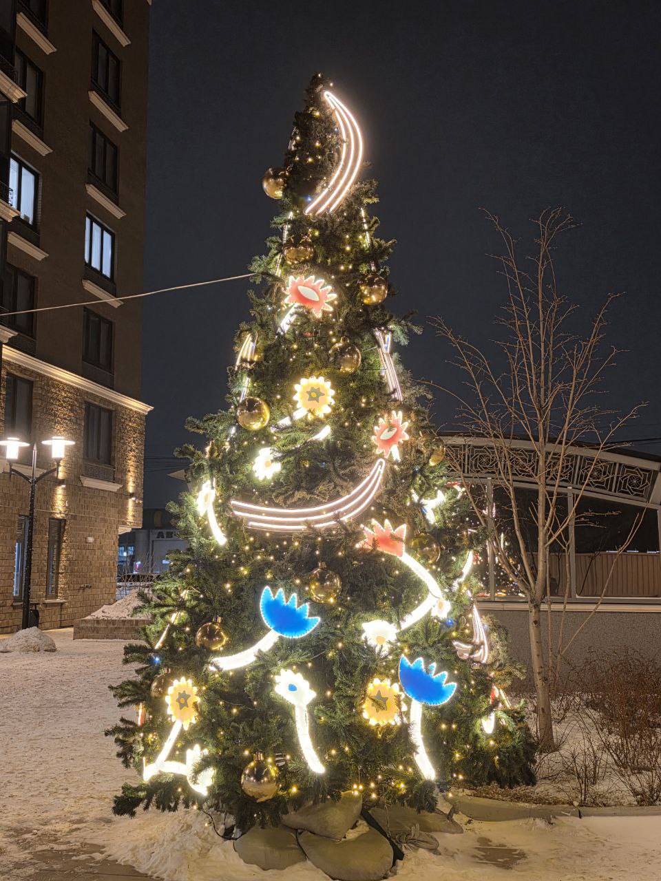 Ёлка, украшенная в стиле художника Андрея Поздеева, появилась в центре Красноярска
