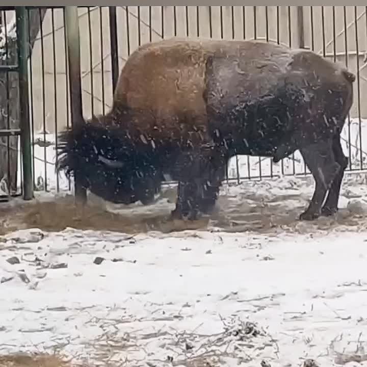 Только взгляните, как бизон Марк радуется снегу!