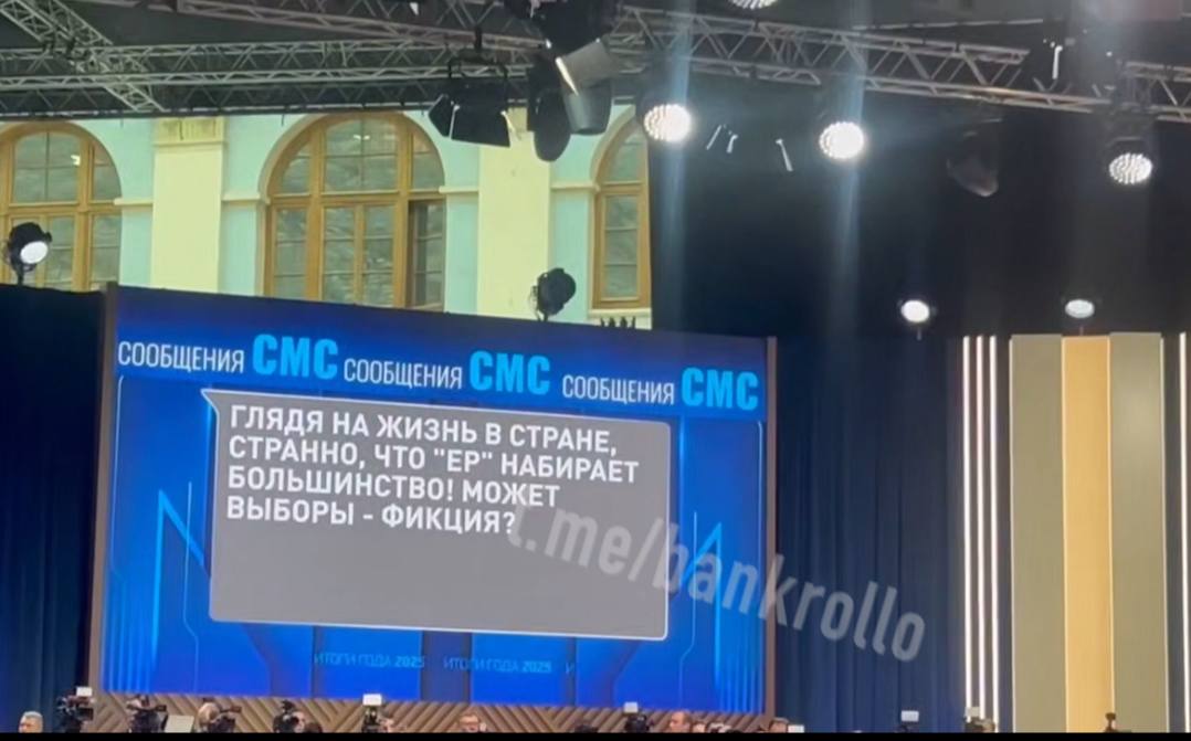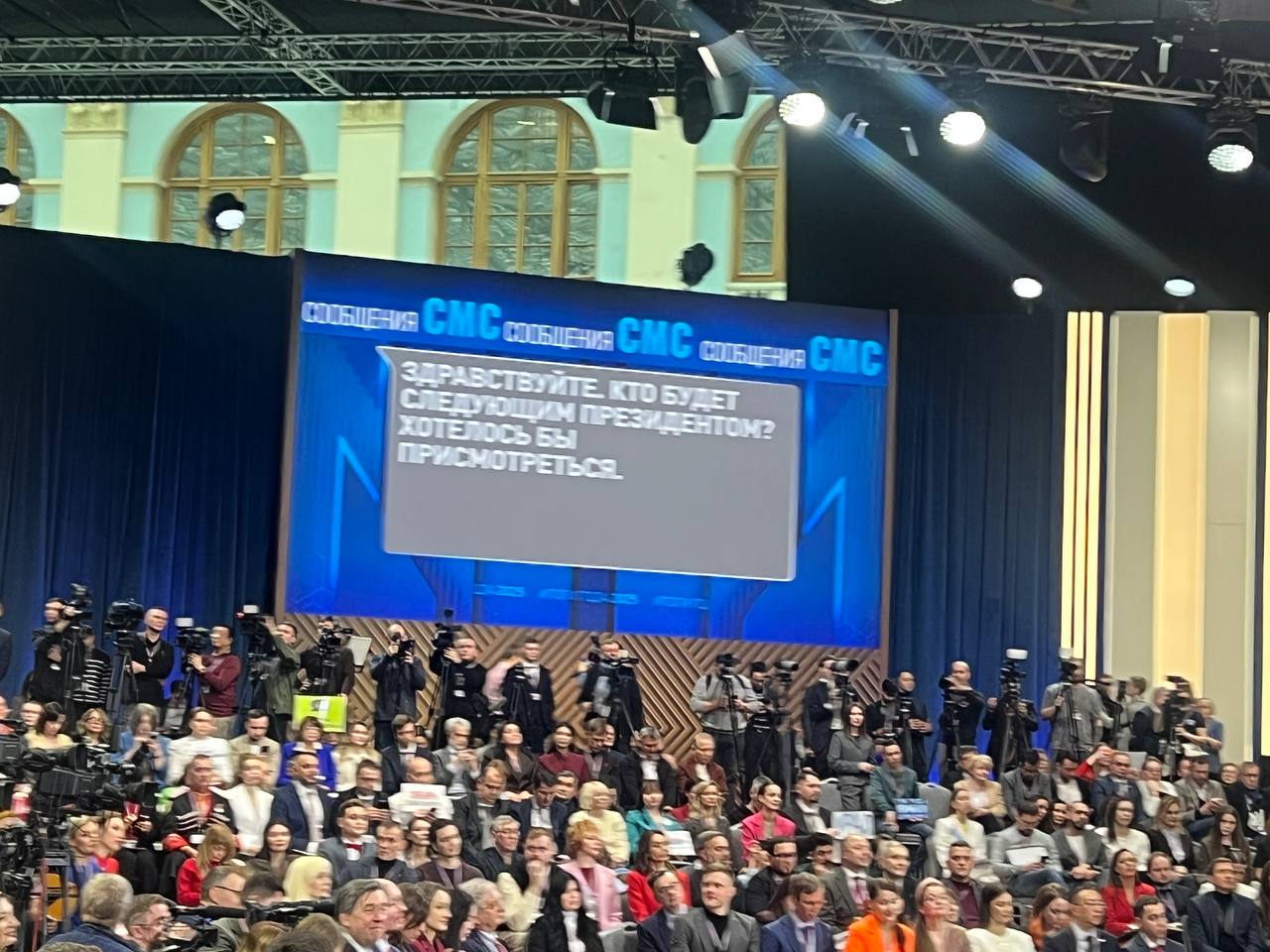 Тем временем, на экраны выводят вопросы россиян к президенту из сообщений.