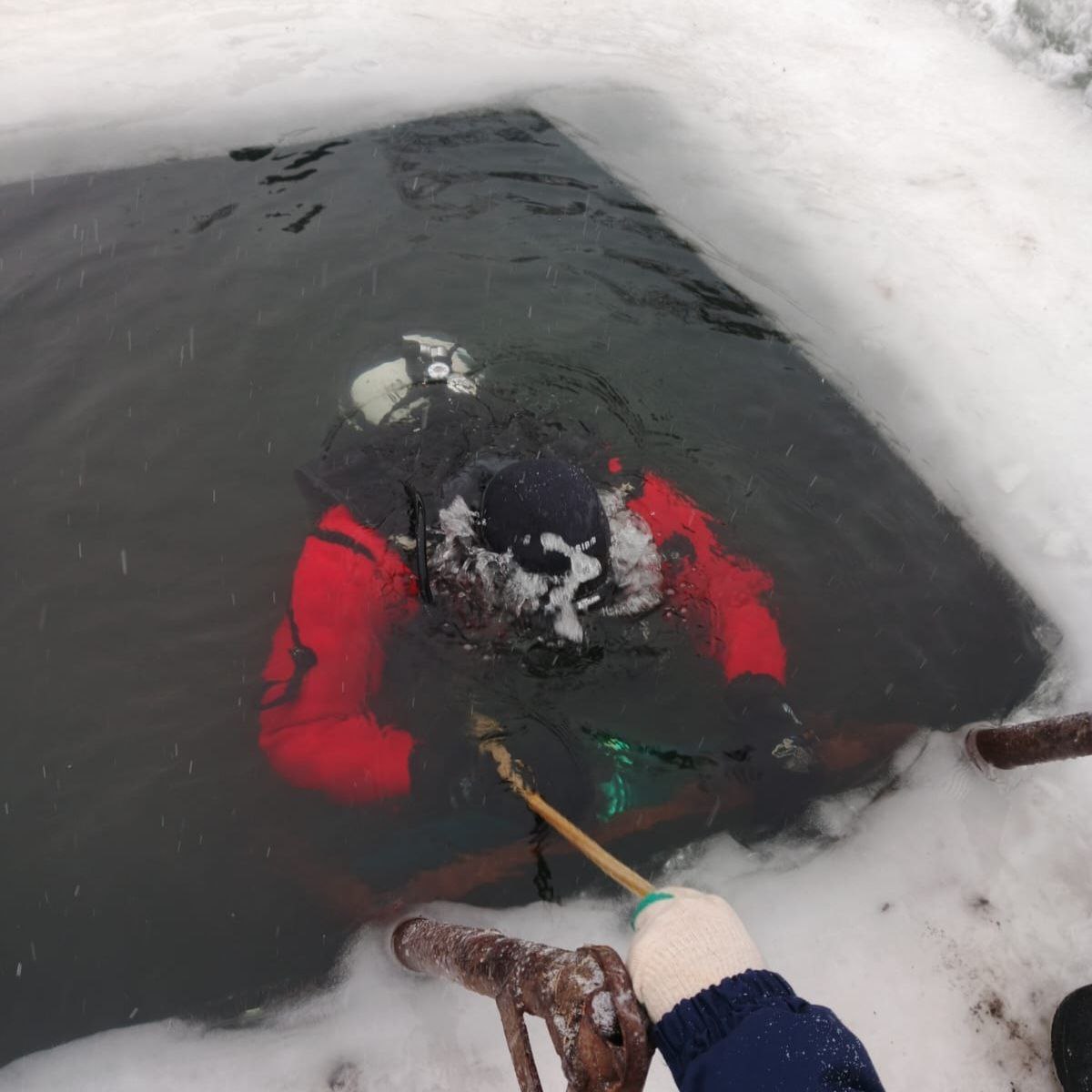 46-летний местный житель решил искупаться, забрался в ледяную купель – и пропал. За время поисков спасатели обследовали 1100 квадратных метров дна водоема, выполнили три водолазных спуска. Тело достали и передали сотрудникам полиции.
