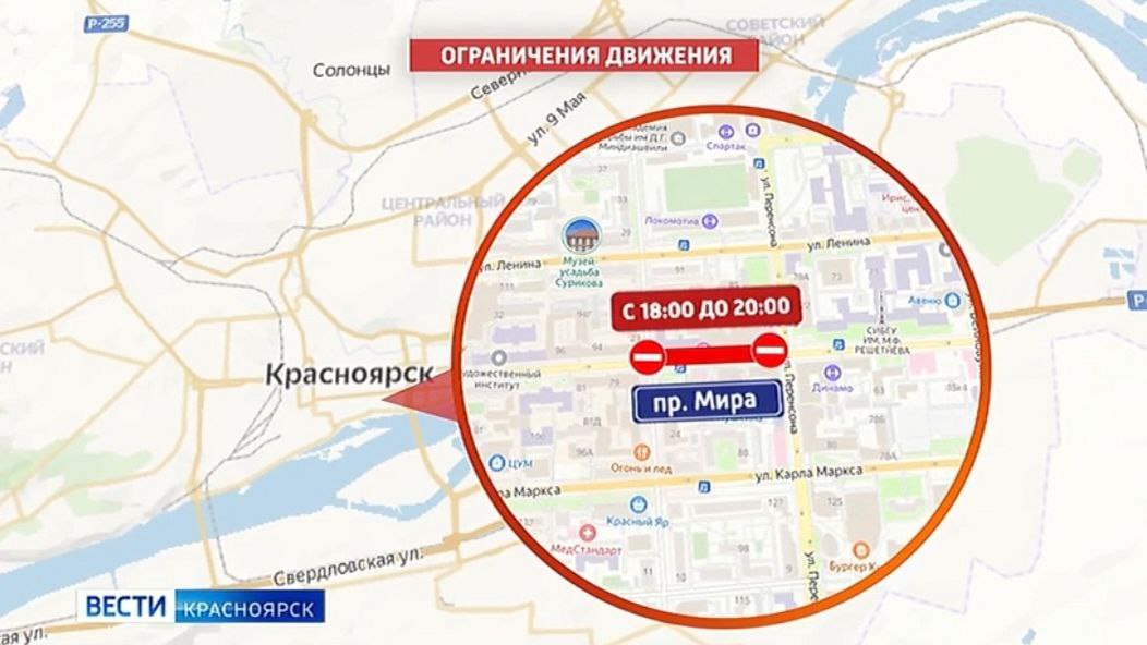 В центре Красноярска временно ограничат движение транспорта