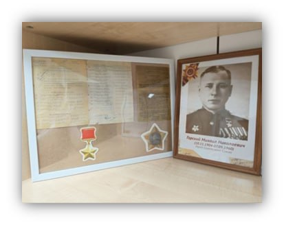В заведении уже установлена «Парта Героя», посвященная Михаилу Николаевичу. Вместе с учителями ребята ведут работу по сохранению памяти фронтовика: ищут архивные документы и создают экспозицию о его жизни в школьном музее.