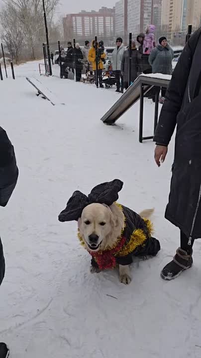 Собаки выходят на прогулку в новогодних костюмах и выполняют творческие задания. Одного из пушистых участников мероприятия запечатлел наш фотограф Михаил Шуклин.