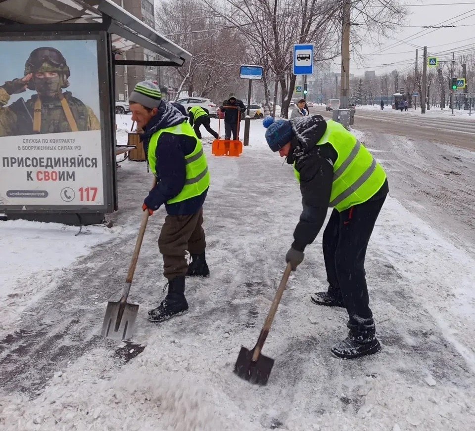 Убирать улицы Красноярска от снега в воскресенье вышли 80 дорожных рабочих