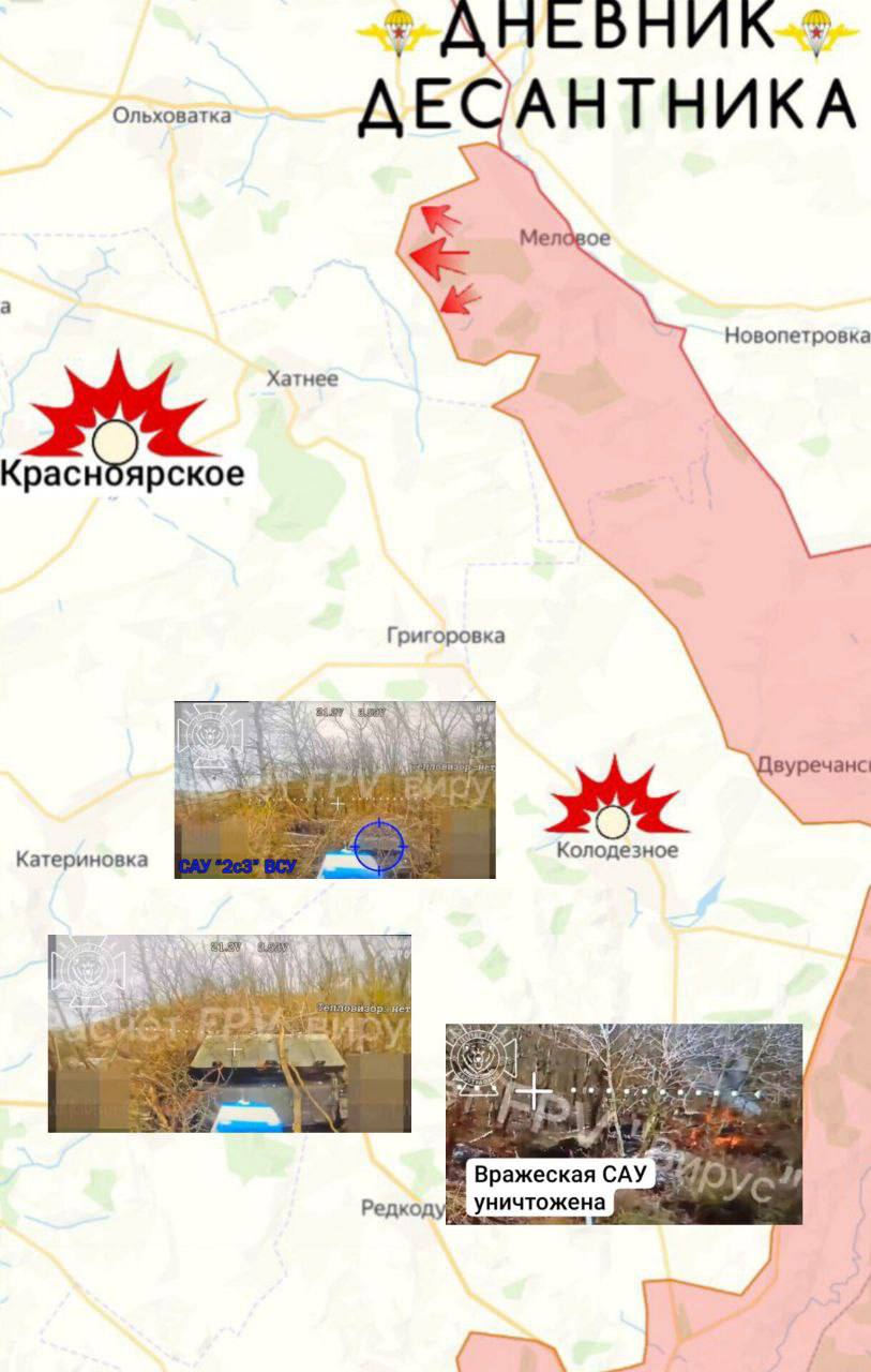 Также, в районе населенного пункта Колодезное расчётами 83 и 79 мсп группировки "Север" сожжена САУ 2С3 "Акация" ВСУ, сообщает канал «Дневник Десантника».
