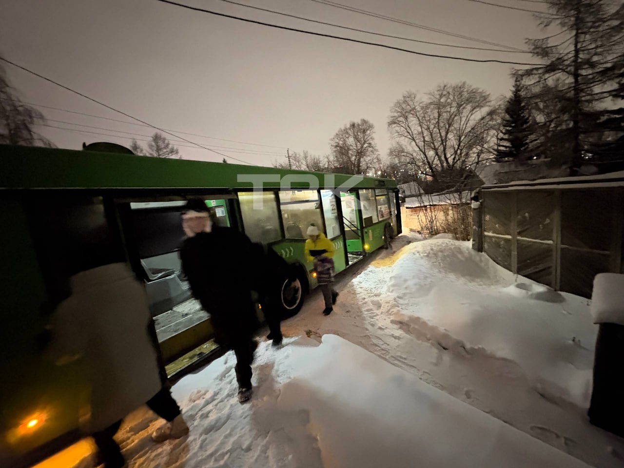 По словам пассажиров, транспорт ехал со стороны «Тихих Зорь» в направлении центра, а на Дубровинского сделал разворот. После автобус застрял так, что пассажиров пришлось высадить.