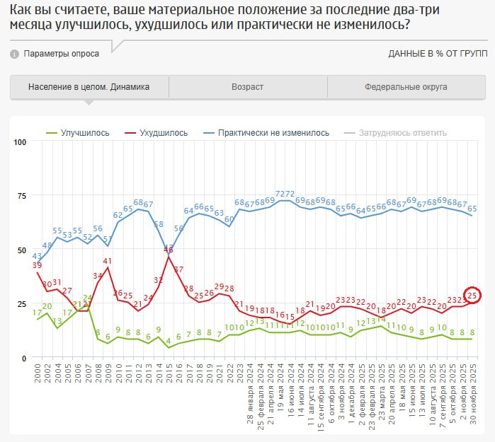 65% респондентов сообщили, что их материальное положение не изменилось, и лишь 8% заявили об улучшении.