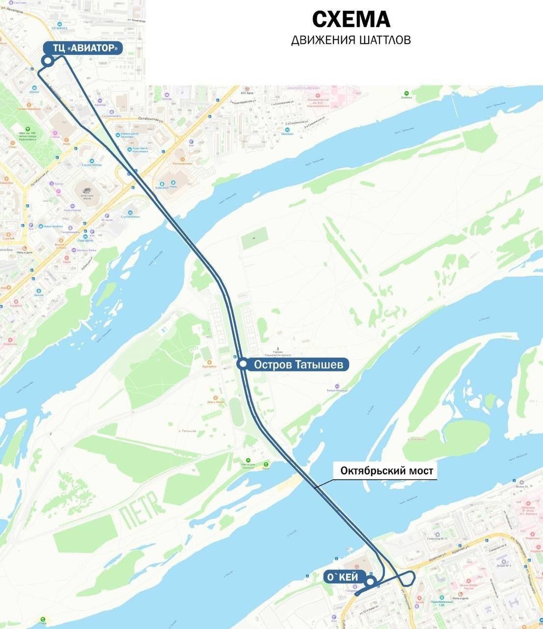 Напомним, что можно воспользоваться бесплатными шаттлами — с 18:30 до 23:30 автобусы будут ходить через остров Татышев (от ТЦ «Авиатор» на левом берегу и от парковочной площадки около ТЦ «Окей» на переулке Сибирский, 5А на правом берегу).