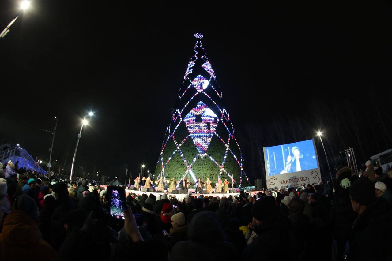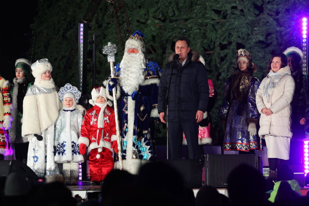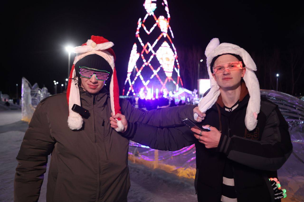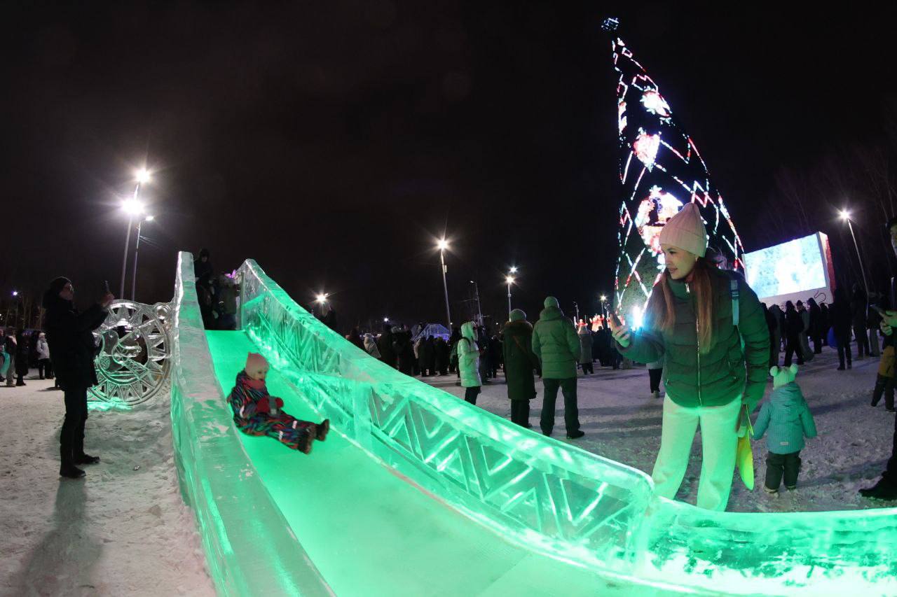 Огни на елке зажгли Дед Мороз вместе с Морозиком и Снегурочкой. Одновременно заработал ледовый городок с горками, ледовыми скульптурами и отдельной зоной для самых маленьких. Сегодня все эти локации будут доступны до 23:00.