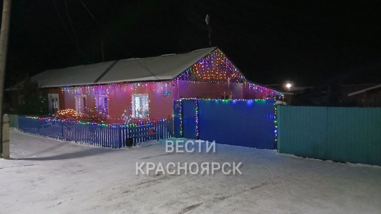 Сияет яркими огнями и дарит праздничное настроение дом в поселке Авда Уярского района