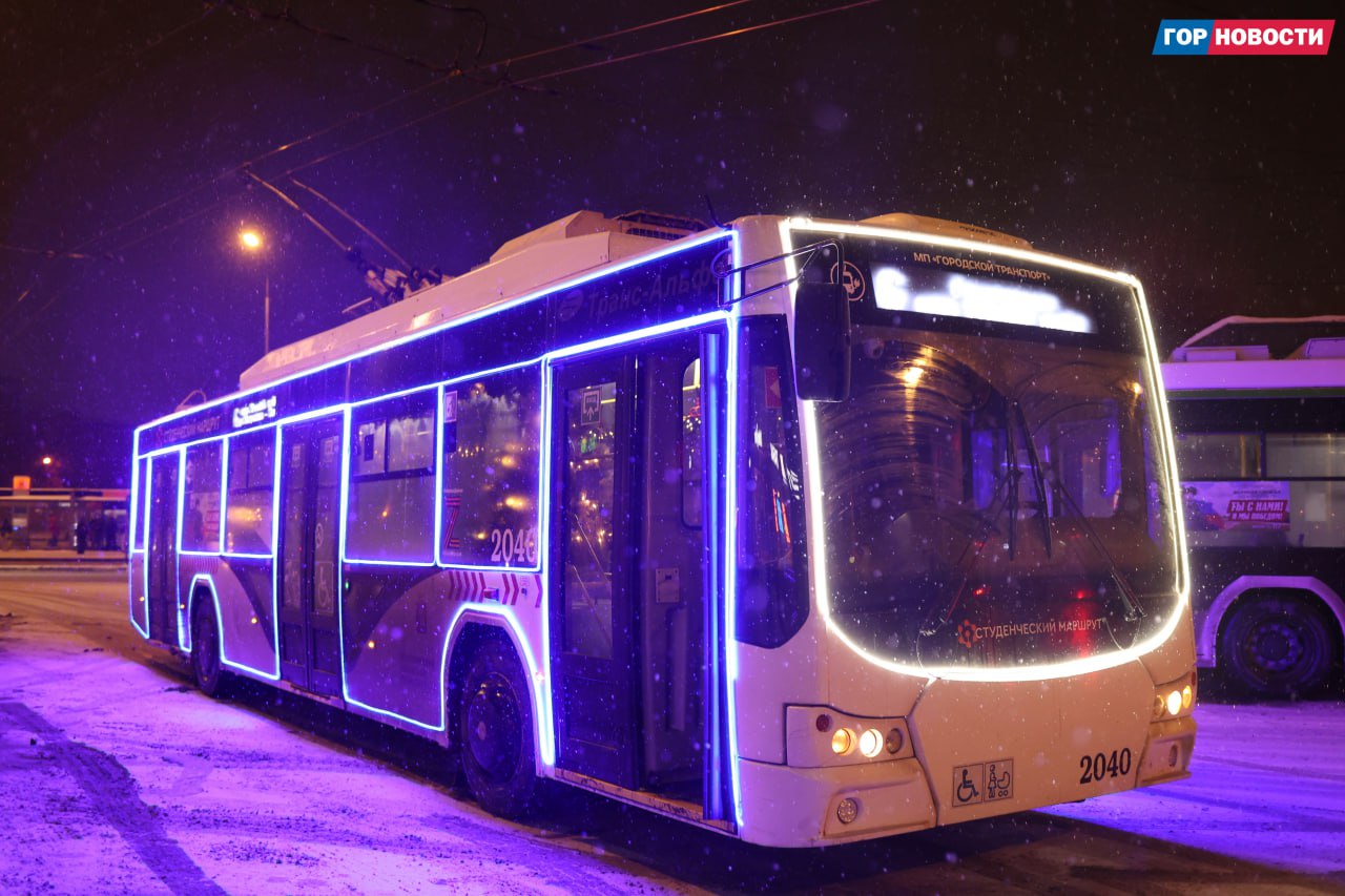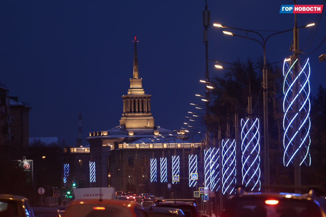 Красноярск перед Новым годом особенно красив. Улицы загораются огнями, деревья сияют подсветкой, по городу даже ездит яркий неоновый троллейбус маршрута № 6.