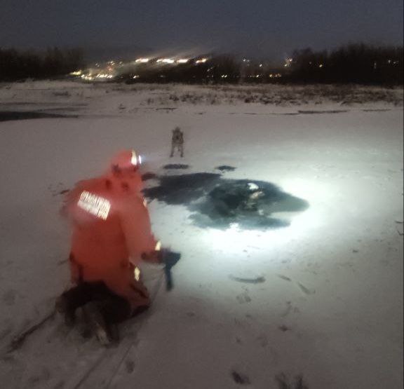 Сотрудники Красноярского поисково-спасательного отряда прибыли на место происшествия. Из-за крайне тонкого льда один из спасателей надел гидрокостюм, ползком добрался до полыньи и извлёк тело мужчины.