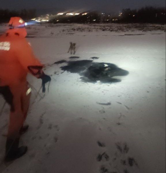 В Красноярске мужчина, гулявший с собакой в районе улицы Дубровинского, вышел на тонкий лёд Енисея и провалился под воду