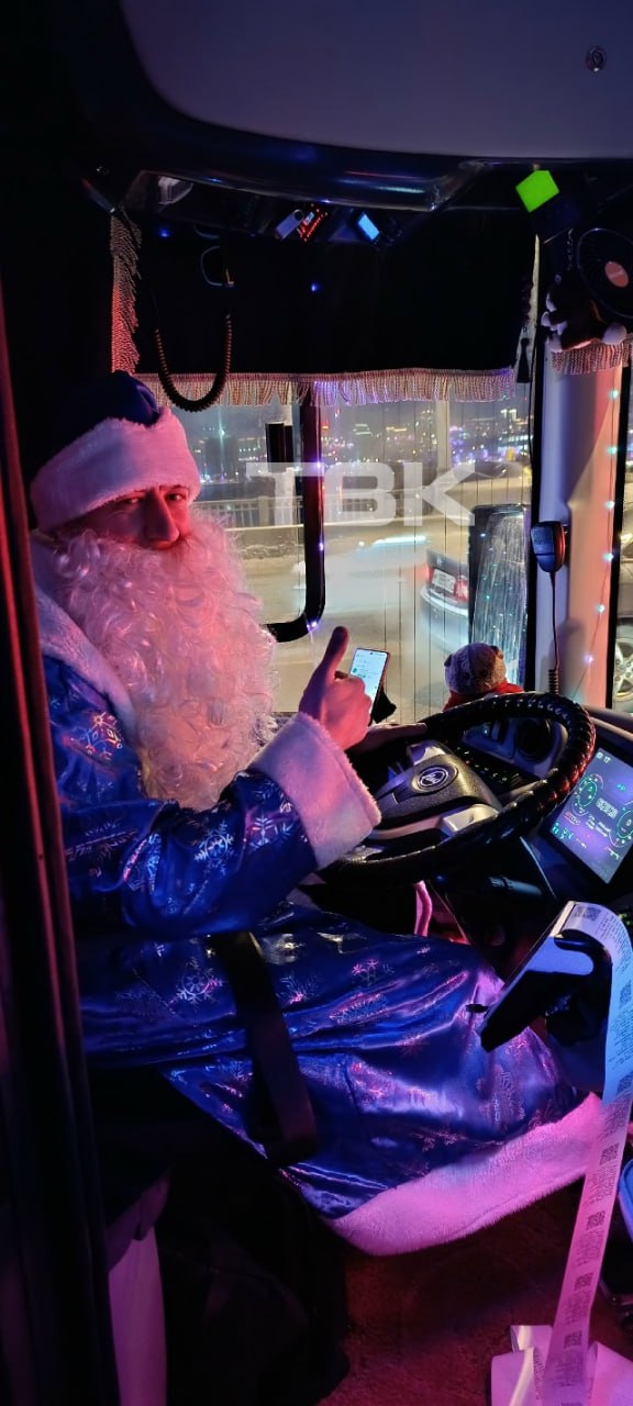 Водитель в костюме Деда Мороза дарит пассажирам новогоднее настроение