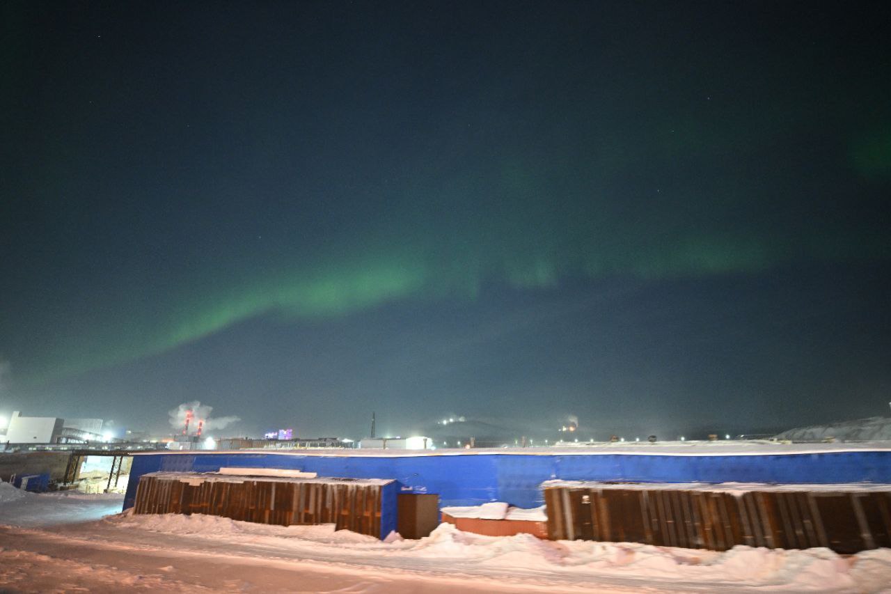 В ночном небе будто разлилась зеленая река. Такую красоту успел запечатлеть норильский фотограф Сергей Докукин.