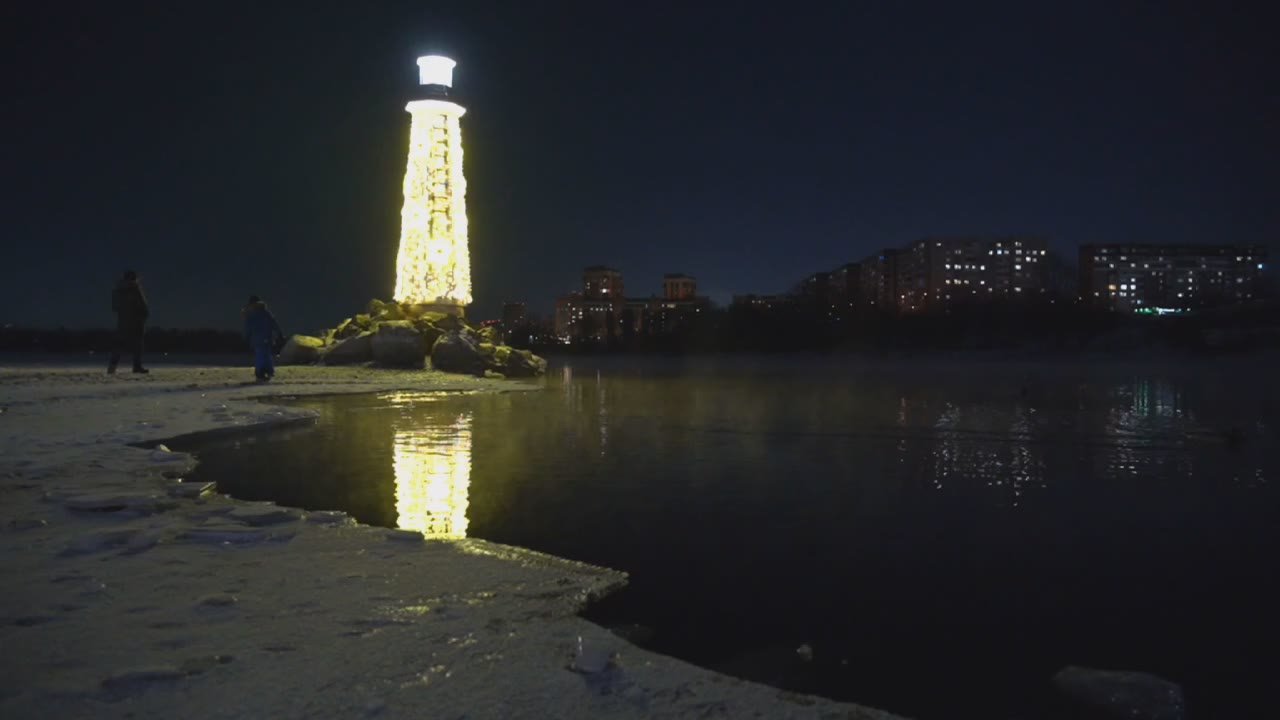 Две достопримечательности Красноярска в одном кадре: маяк и уточки.