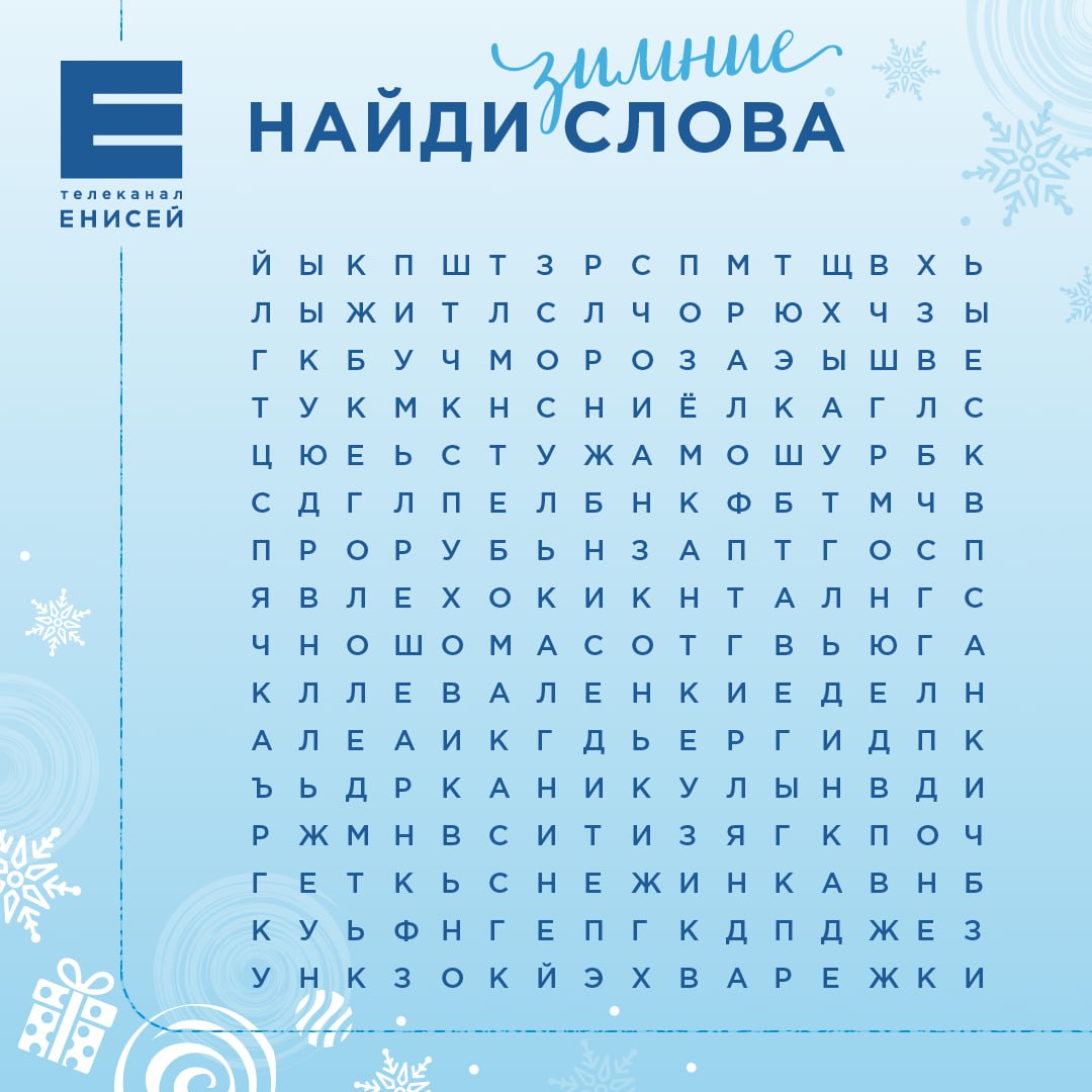 Для вас мы зашифровали несколько зимних словечек. Найти их можно либо по горизонтали, либо по вертикали.