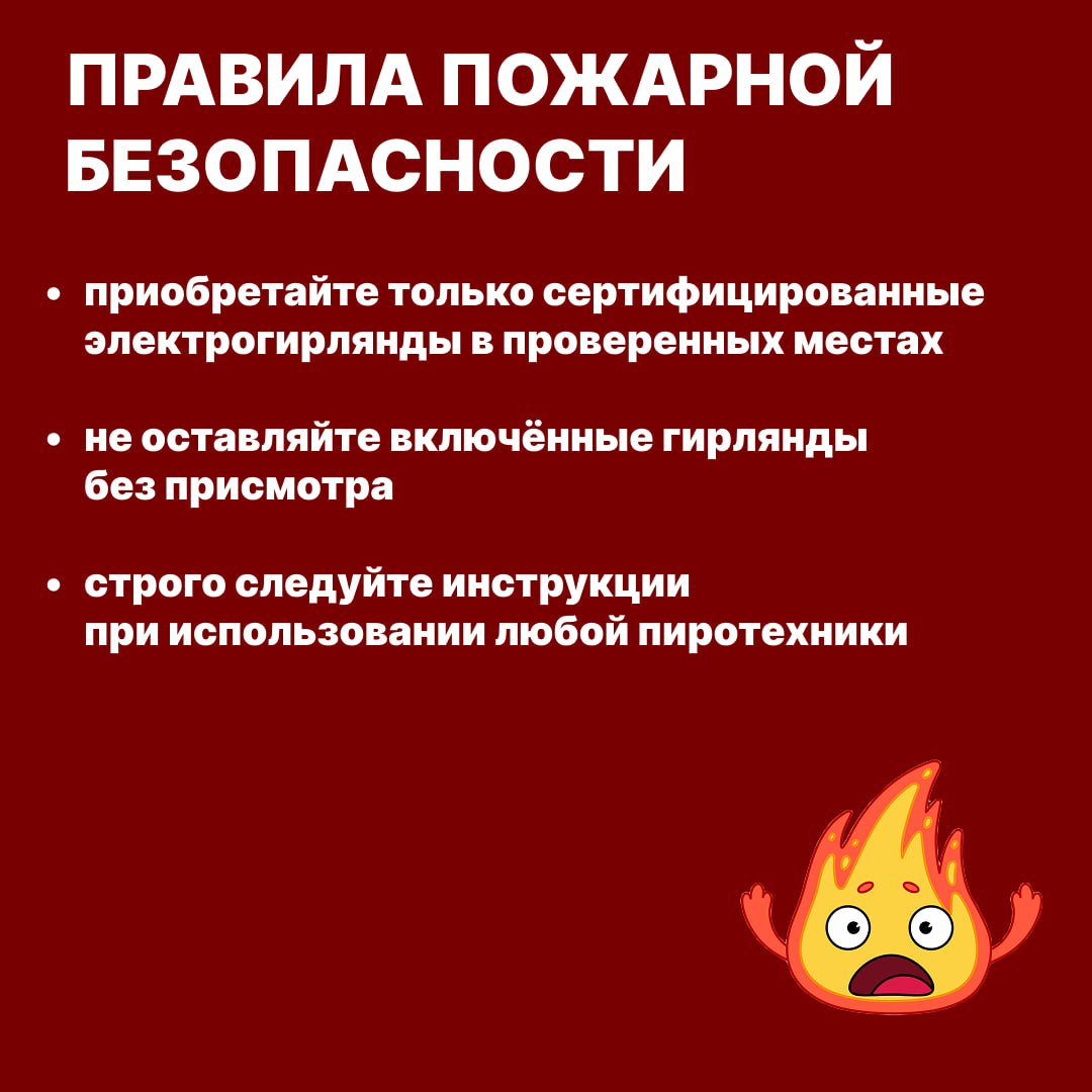 Чтобы праздники прошли спокойно и безопасно, помните о пожарной безопасности. Собрали советы в карточки и на сайте. Берегите себя!
