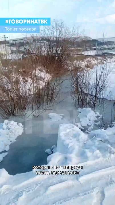 Кадрами подтопления делятся местные жители. По их словам, вода прибывает с каждым днем. Люди боятся, что с потеплением может затопить их дома и дорогу.