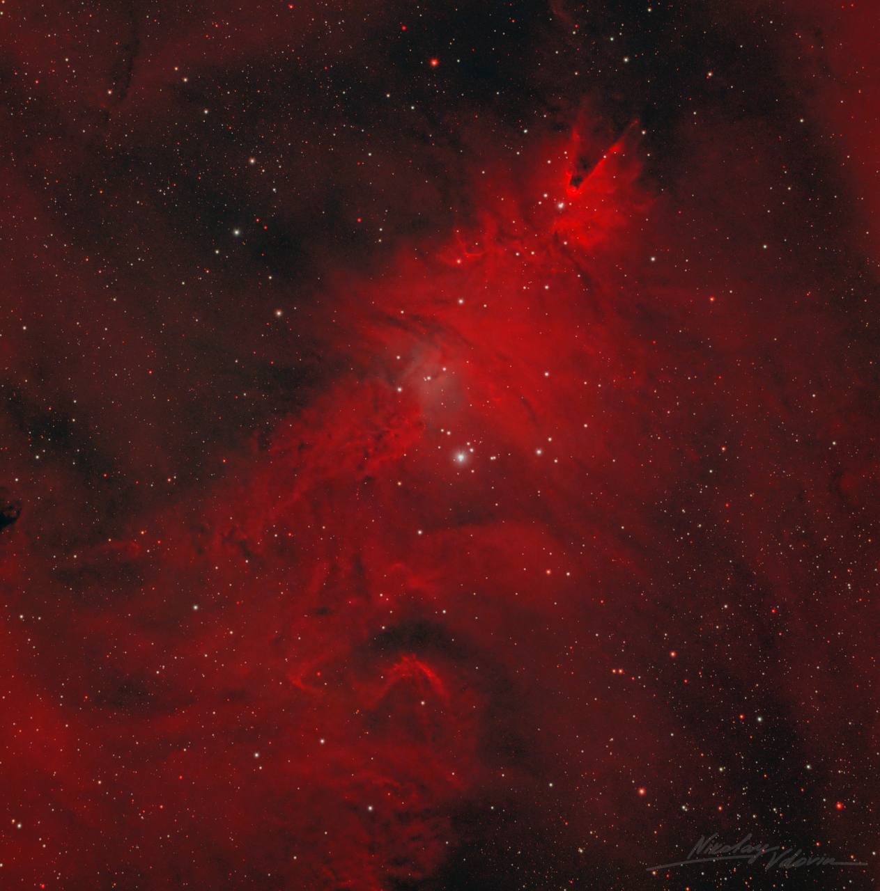 Внутри «елки» также находится туманность «Лисий мех» – она посередине. А сверху, в форме небольшой перевернутой елки – Коническая туманность.