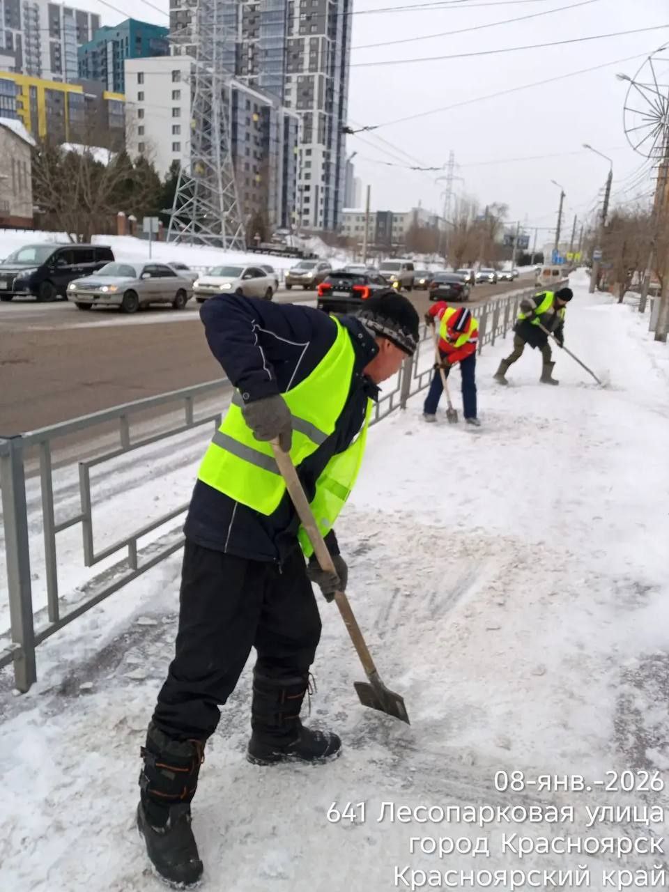 Уборка продолжается: днём дорожные службы основное внимание уделяют тротуарам и пешеходным зонам.