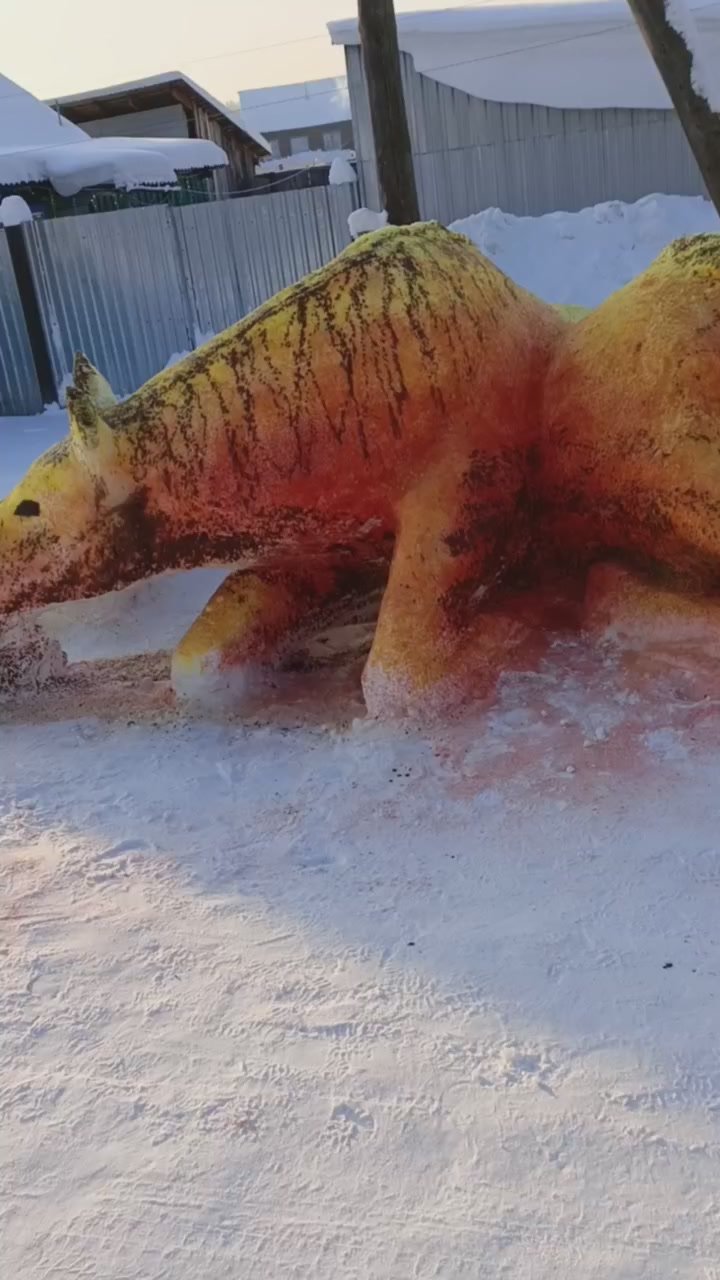 Семью лошадей – символа наступившего года — из снега соорудил художник-самоучка Михаил С. у дома местной жительницы, рассказали коллеги из газеты «Сельский труженик» и поделились памятным видео