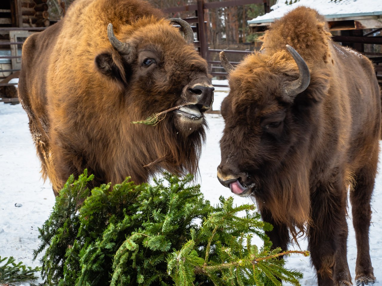 Одним зверям они помогают поуютнее устроить свой вольер или спрятаться от посторонних глаз, другим служат еще одной игрушкой, а для третьих — лакомство и источник витаминов. Однако все без исключения радуются этим хвойным подаркам.