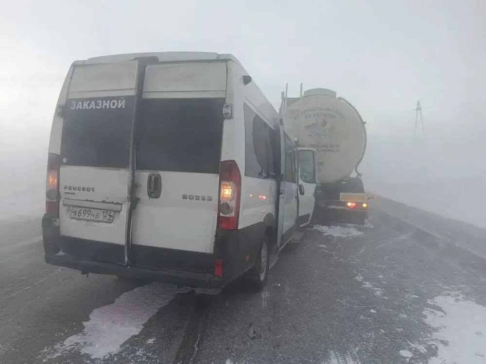 Микроавтобус Ужур – Красноярск столкнулся с грузовиком, пострадали 11 человек, включая двух несовершеннолетних.