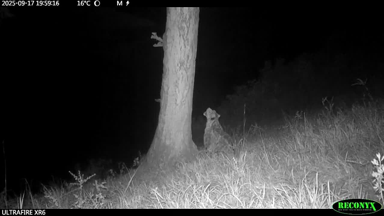 Фотоловушка сняла ночную охоту снежного барса по кличке Клёпа. Хищница заметила белку на дереве, вонзила когти в ствол и устремилась вверх за добычей. Зверек стал скакать по сосне. Охотница на мгновение решила, что пушистая спустилась, и сама спрыгнула, а потом караулила ее внизу.
