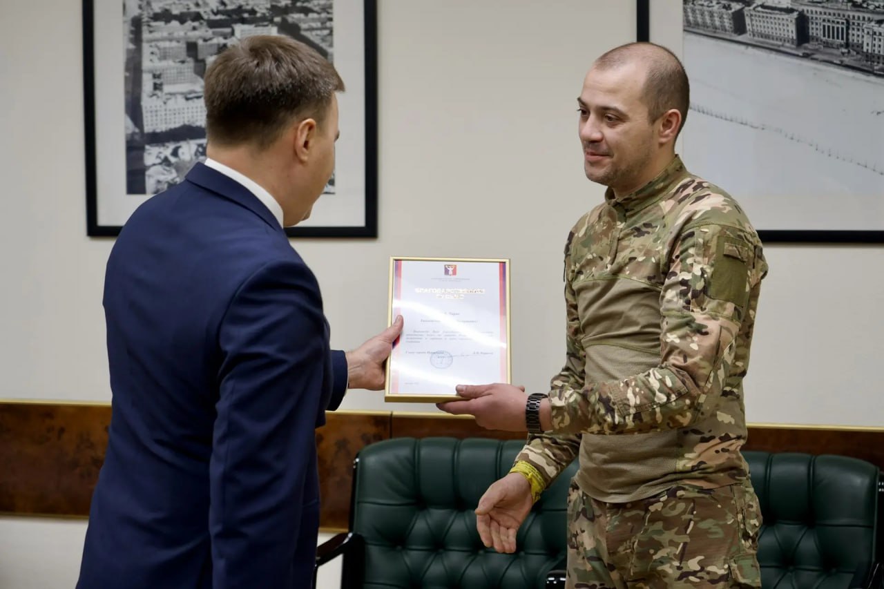 От имени всех горожан я вручил ему Благодарственное письмо за проявленное мужество и героизм, а также за достойное выполнение воинского долга перед Отечеством.