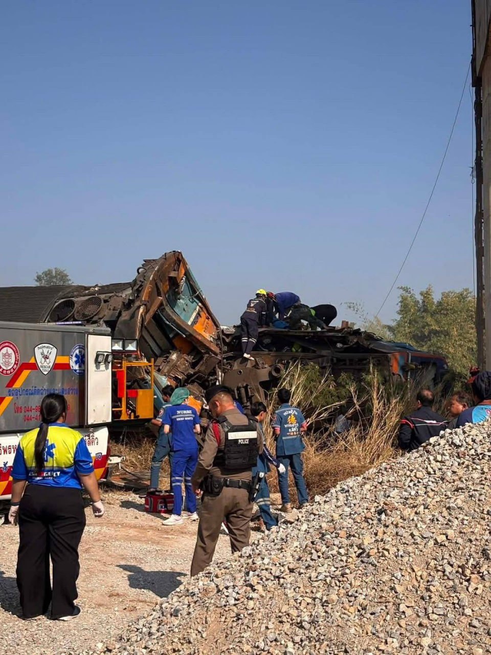 По данным местных СМИ, 22 человека погибли, еще 55 пострадали. Состав следовал из Бангкока, когда кран упал на поезд. Локомотив дернул за трос крана, после чего вагоны сошли с рельсов. Почти 200 человек оказались заблокированы внутри.